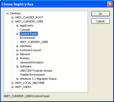 The Choose Registry Key dialog box, which is accessed by clicking New on the Registry Tab, provides a way for you to select registry keys that you want excluded from analysis.