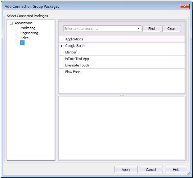 9. Under Select Connected Packages, select the group in the tree that contains the App-V package that you want to add to the connection group. The packages in that group are listed under Applications.