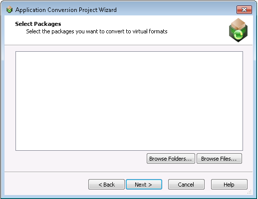 Browse local machine and network—If you selected this option on the Select Package Source panel, there are no packages listed on the Select Packages panel. You need to click Browse Folders or Browse Files to select packages to convert. The Browse For Folder or Select Package Installation File dialog box would open. See Automated Application Converter’s Selection Rules When Adding Packages from a Directory for more information.