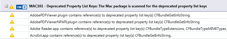 • These error/warning messages list information specific to the package that explains why the error or warning was generated, such as the table name and/or the component name that is causing the issue.