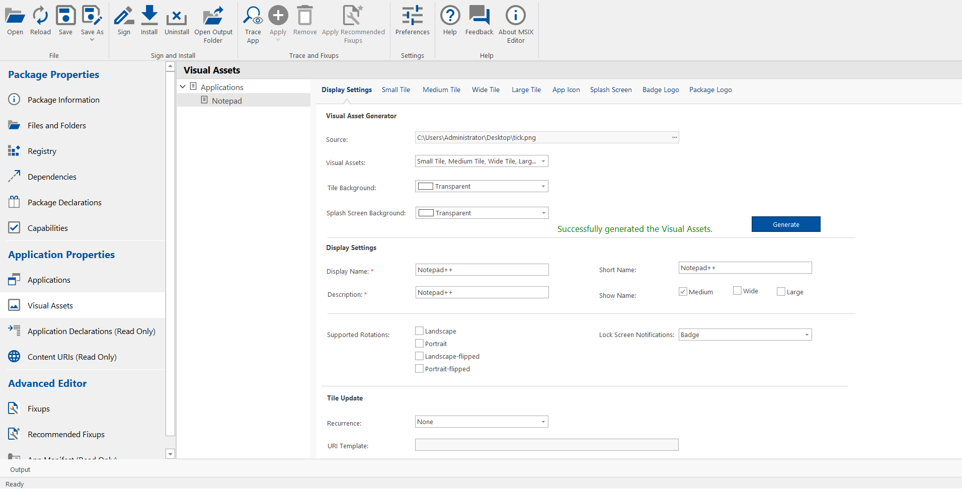 To generate visual Assets, perform the following steps.